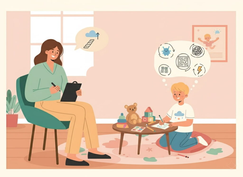 Terapie pentru copii care se confruntă cu anxietate (griji constante, frici specifice, atacuri de panică).