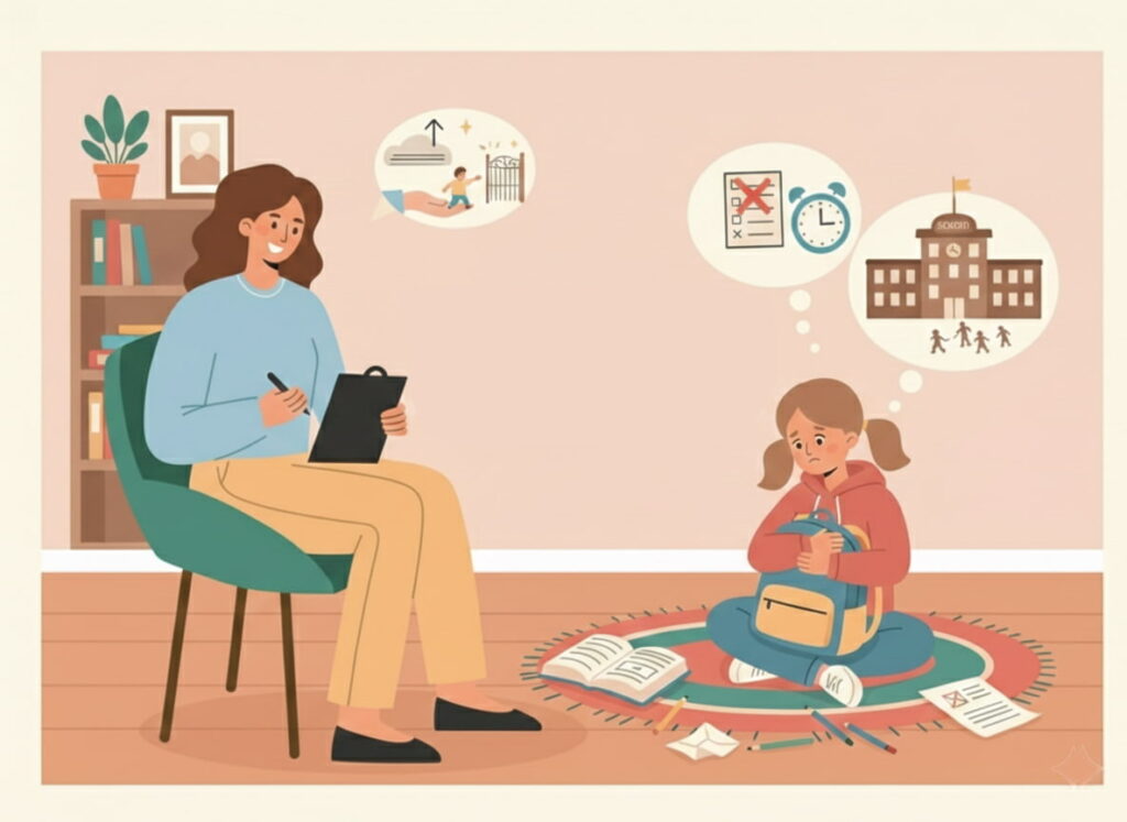 Terapie pentru copii care se confruntă cu anxietate școlară (refuz școlar, teama de teste și evaluări).