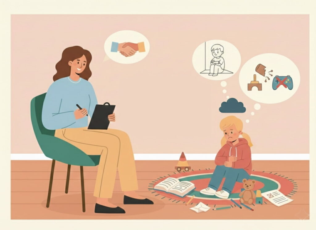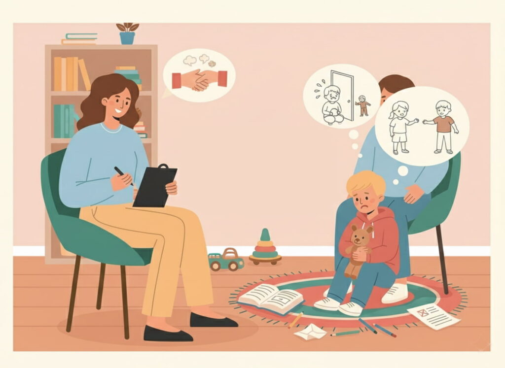 Terapie pentru copii care se confruntă cu anxietatea de separare (teama intensă de a rămâne singuri sau departe de părinți).