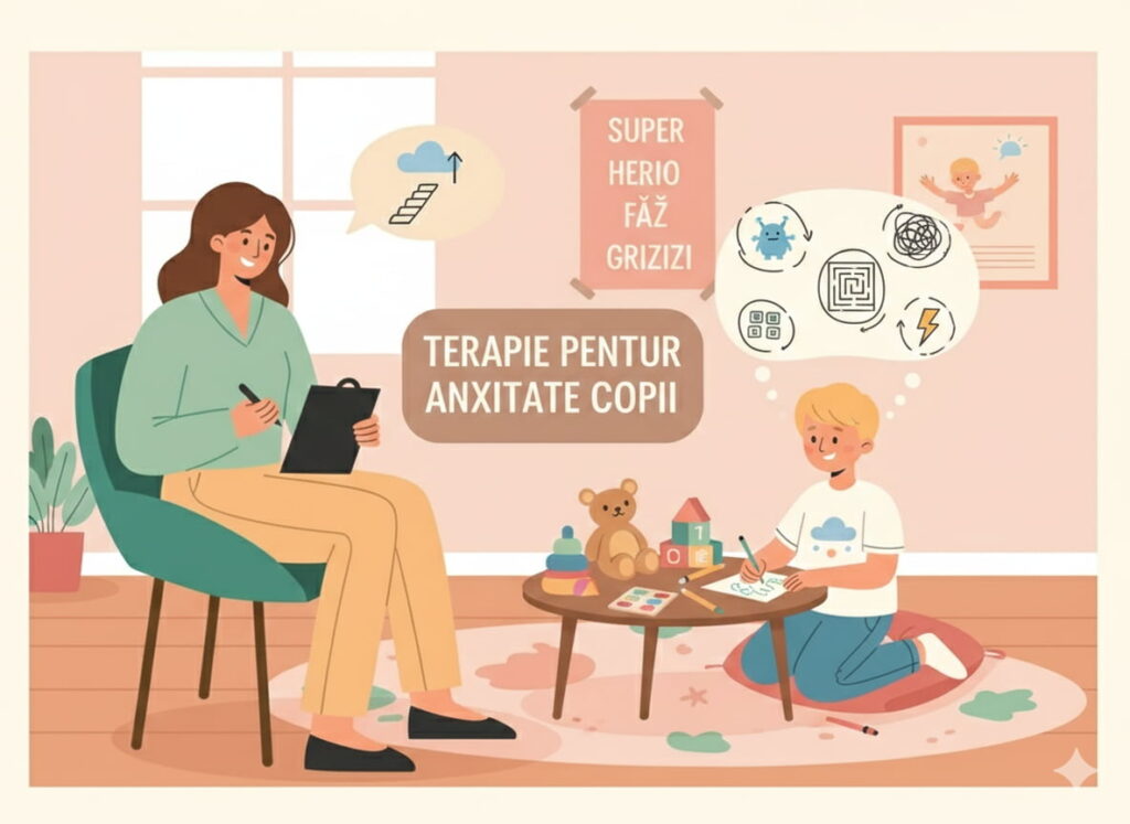 Terapie pentru copii care se confruntă cu anxietate (griji constante, frici specifice, atacuri de panică).