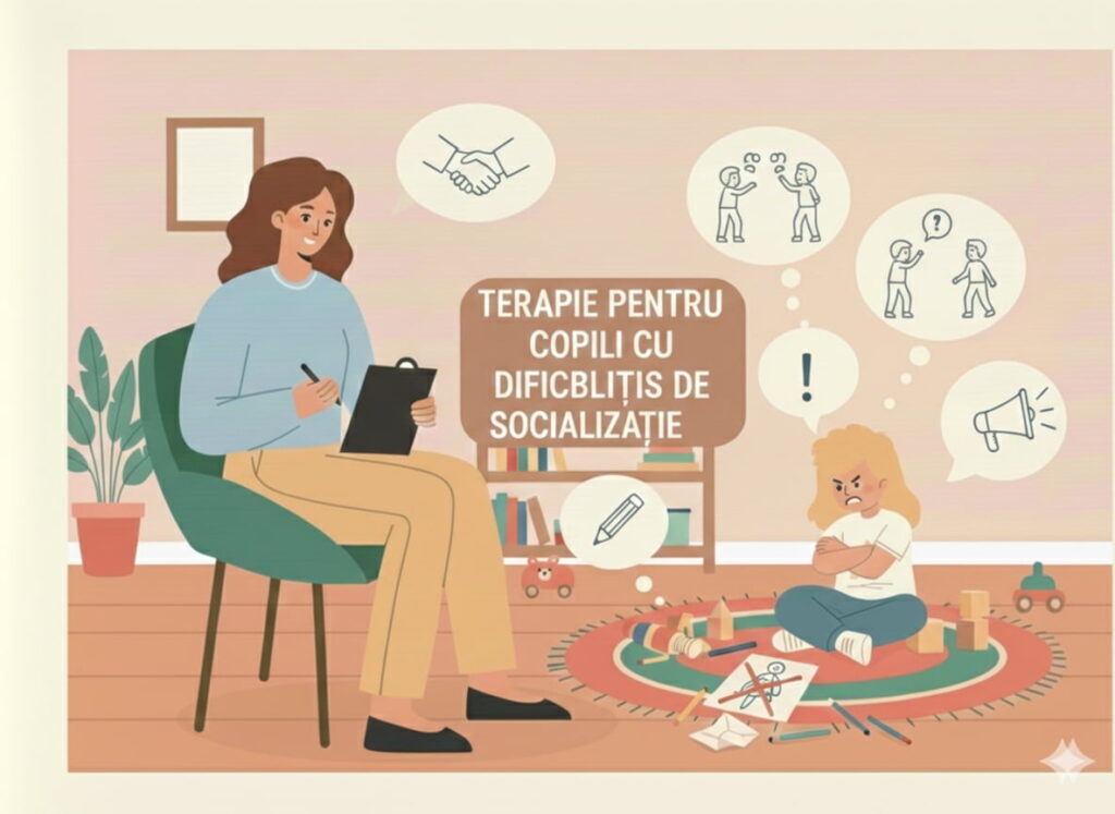 Terapie pentru copii care se confruntă cu dificultăți de socializare (situații de bullying, dificultatea de a-și face prieteni sau de a se integra în grup).
