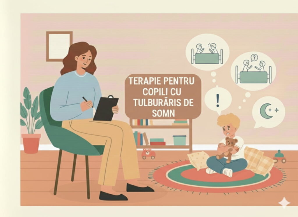 Terapie pentru copii care se confruntă cu tulburări de somn (coșmaruri frecvente, teama de a dormi singuri, treziri nocturne pe fond emoțional).