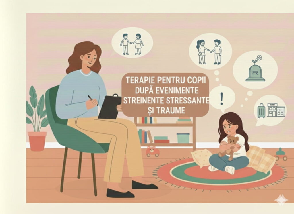Terapie pentru copii care trec prin evenimente de viață stresante sau traume (divorțul părinților, pierderea unei persoane dragi, apariția unui nou frate/soră, mutarea într-o altă țară/școală).