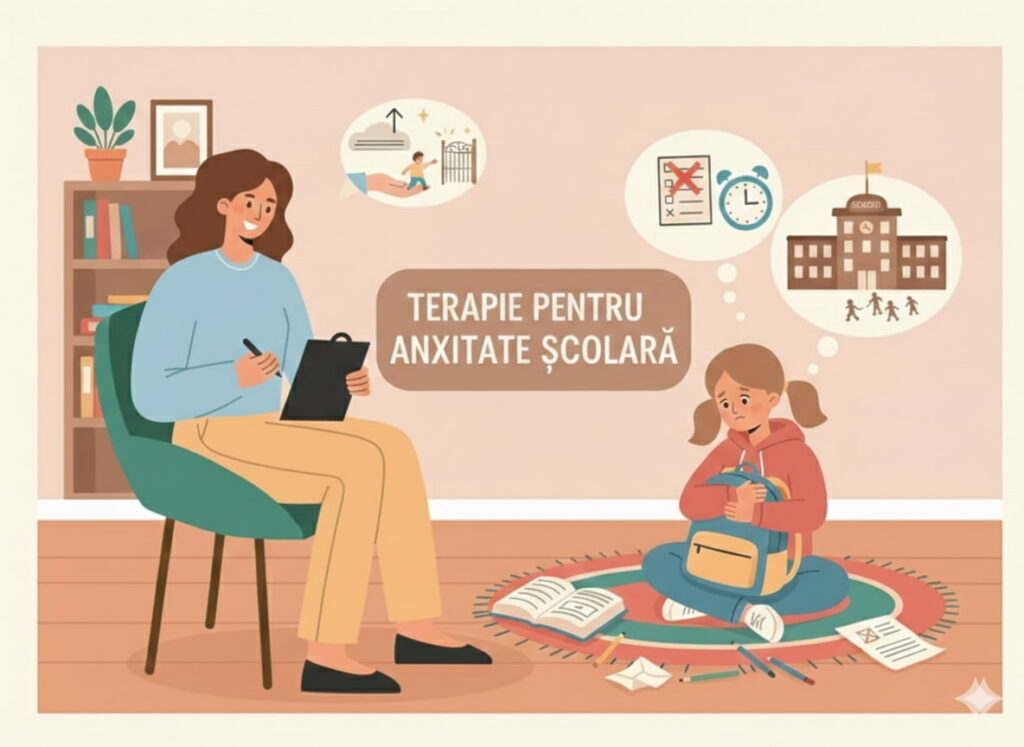 Terapie pentru copii care se confruntă cu anxietate școlară (refuz școlar, teama de teste și evaluări).