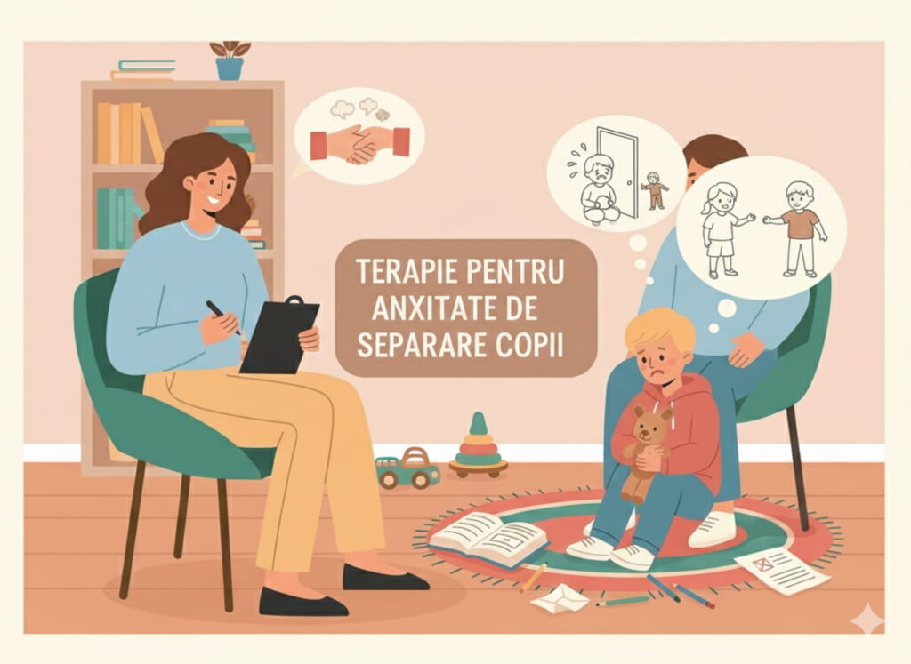 Terapie pentru copii care se confruntă cu anxietatea de separare (teama intensă de a rămâne singuri sau departe de părinți).