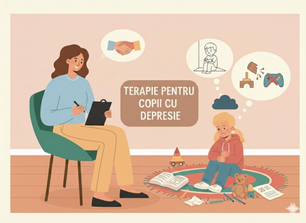 Terapie pentru copii care se confruntă cu episoade de depresie (tristețe profundă, retragere socială, lipsa interesului pentru joacă).